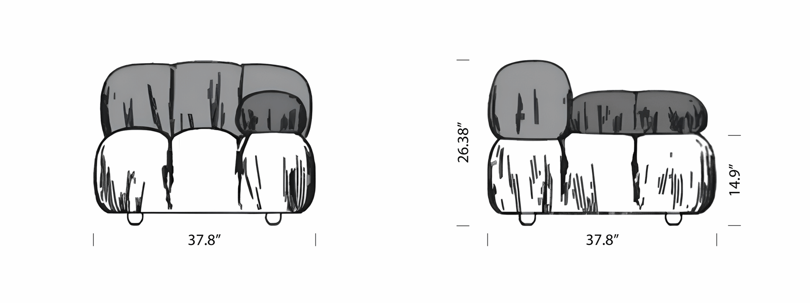 Sofa Measurement: 38 W x 38 D x 26 H inches / 96 W x 96 D x 67 H cm