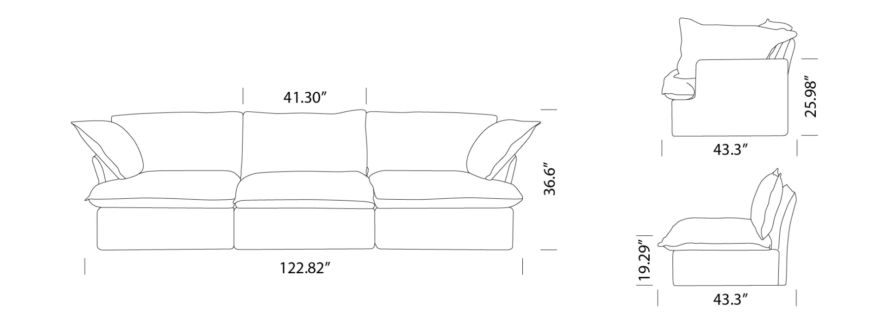 Armless: 41.3 W x 36.6 H inches / 104.9 W x 92.96 H cm