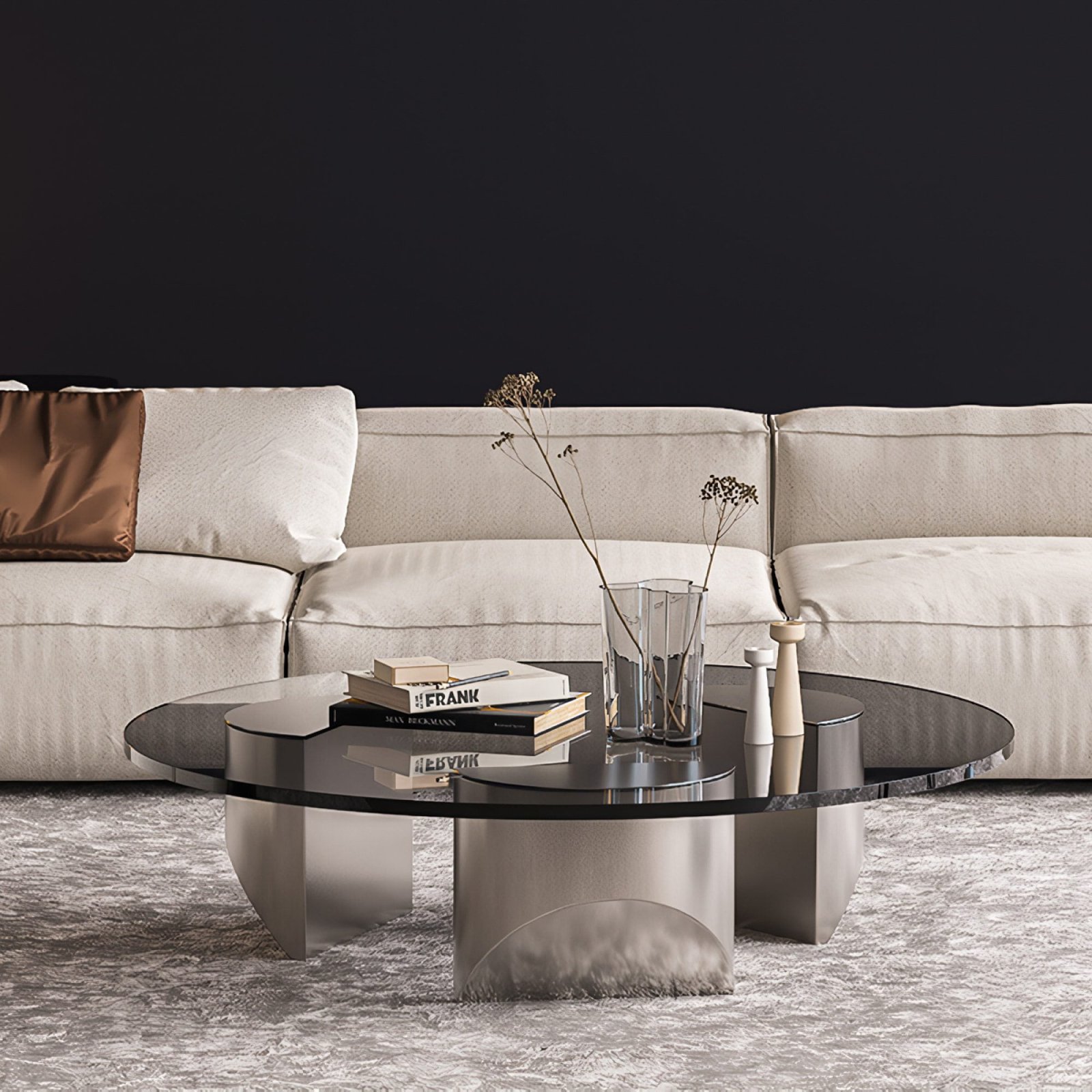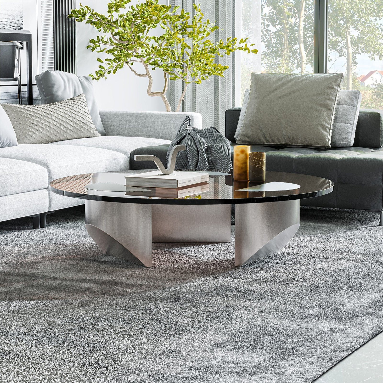 • 12+8 mm laminated, tempered glass top in Smoked Grey or Bronzed finish with extra-clear glass